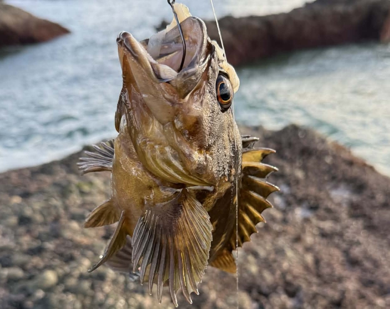 Most of the rockfish I’ve caught here are black-and-yellow rockfish, similar to other rocky-shore fishing spots in the rest of the state. If you intend on keeping the fish you catch, keep in mind that this particular species of rockfish are classified as high in methylmercury and PCBs, and you should limit your consumption if possible.